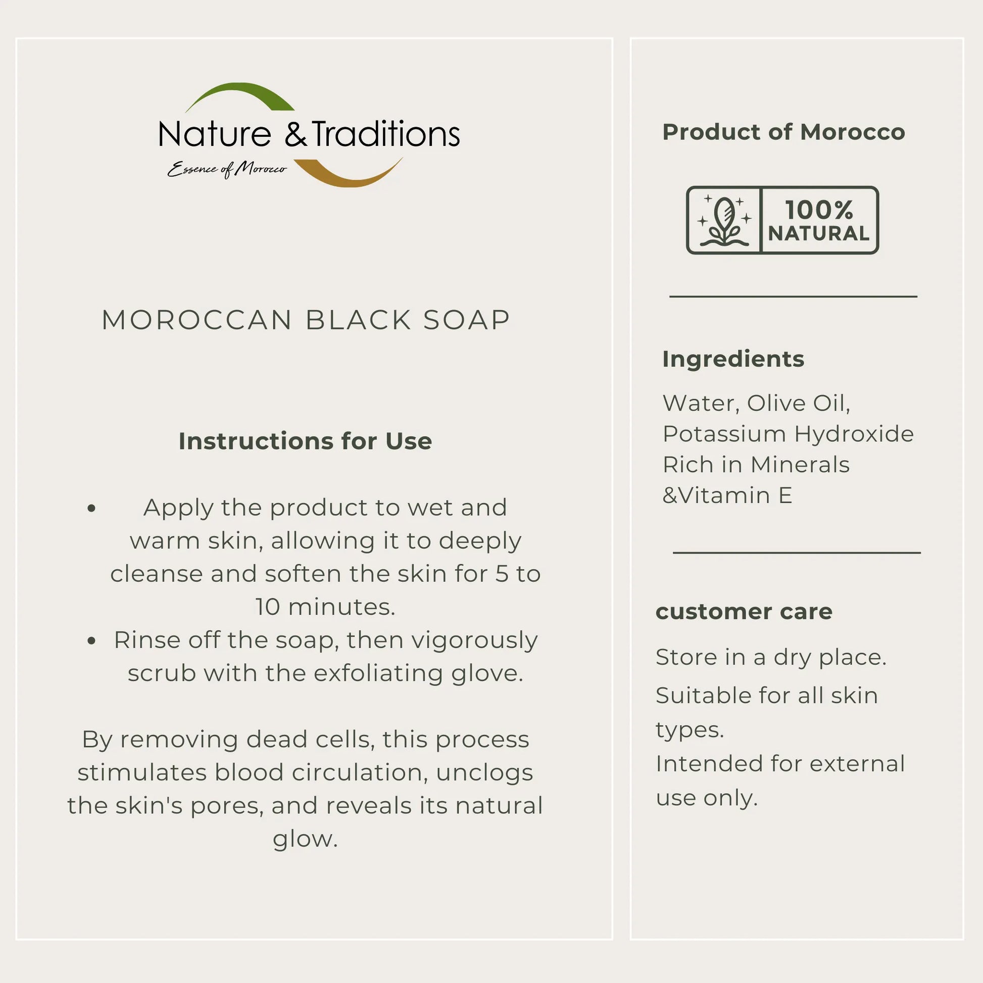 At Nature & Traditions, we pride ourselves on offering authentic, Fair Trade products with the finest natural ingredients. Our Moroccan Black Soap is sustainably sourced, ensuring you receive the highest quality while supporting local Moroccan artisans.