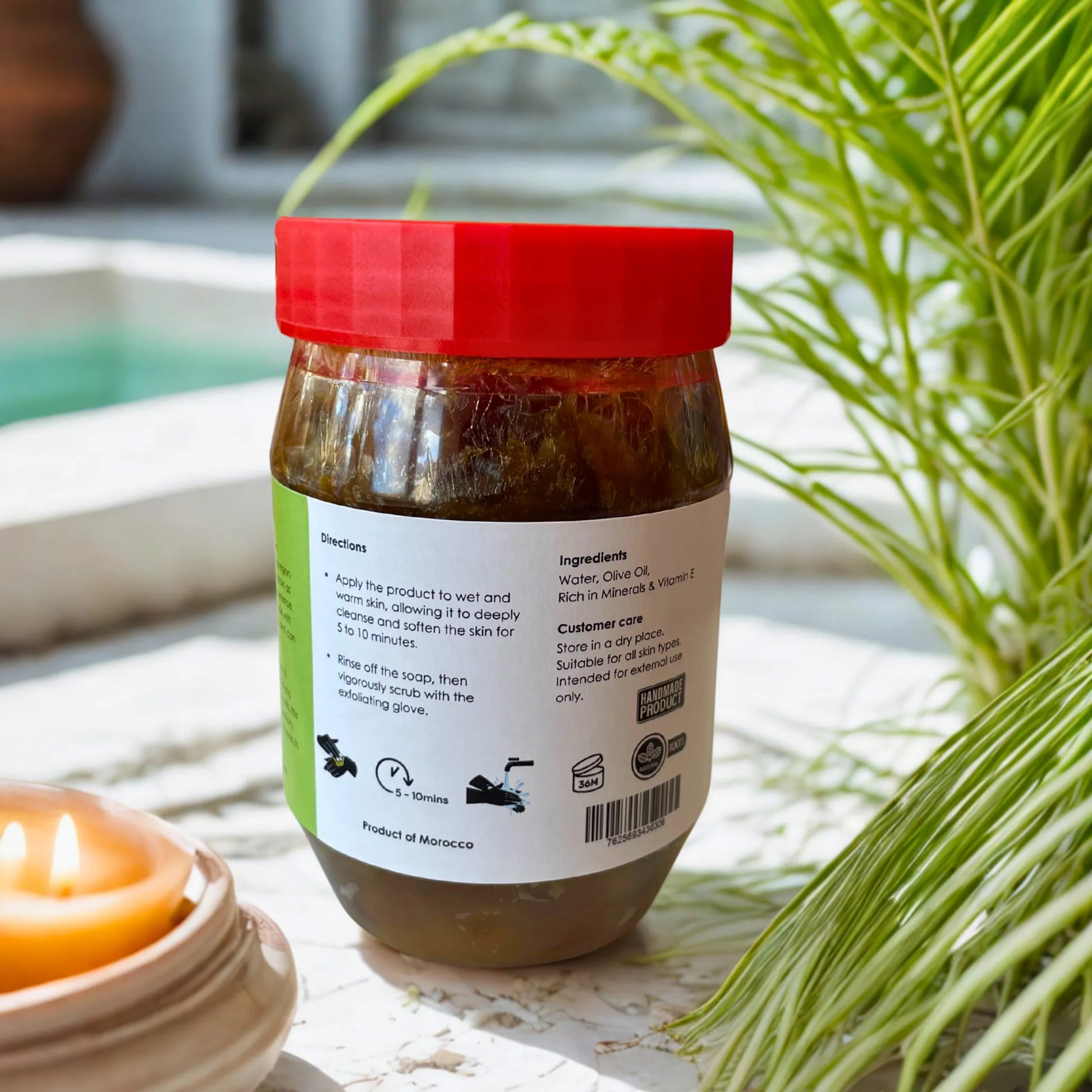 - Rejuvenates & Preps Skin: The soap softens the skin and preps it for exfoliation, making it an ideal companion to a Moroccan Kessa glove for an authentic hammam experience.